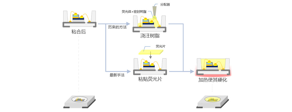 這個(gè)過程是制造LED的核心過程。2014年的藍(lán)色LED研究獲得了諾貝爾獎(jiǎng),之所以獲獎(jiǎng)是因?yàn)榻?jīng)此過程,LED的質(zhì)量得到了顯著改善,使得制造實(shí)用藍(lán)色LED成為可能。獲獎(jiǎng)的原因之一是,正如這里所提到的,通過采用一種稱為雙流法的方法,用兩種原料氣體以供晶體生長,因此制造出更優(yōu)質(zhì)的晶體。此外,p型層的激活,低溫緩沖層等LED的晶體生長膜方法,在許多技術(shù)的積累之上實(shí)現(xiàn)了制造出本世紀(jì)的藍(lán)光LED。